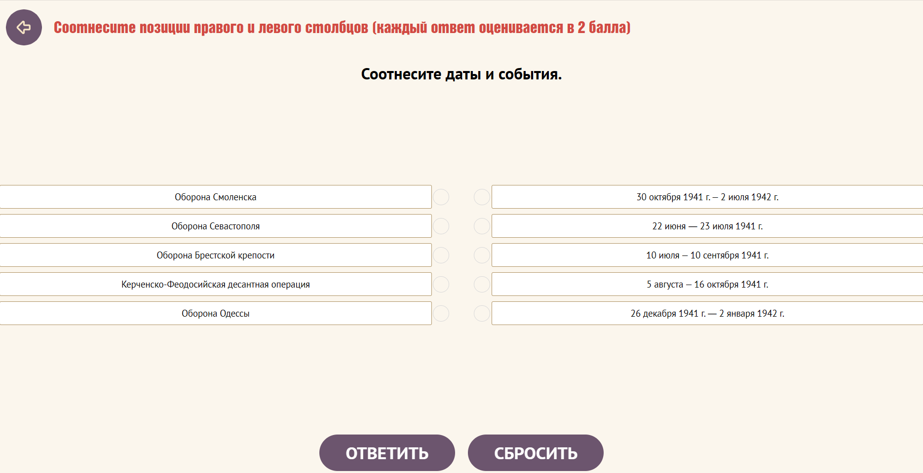 Интерактивный тренажёр предназначен для подготовки к выполнению заданий ВПР, посвящённых Великой Отечественной войне. Он включает краткий теоретический материал по основным событиям Великой Отечественной войны, который изложен в доступной форме и может быть изучен самостоятельно.